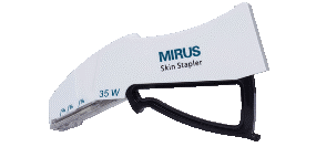 MIRUS Skin stapler is a sterile single patient use, mechanical instrument designed to deliver precise rectangular shape stainless steel staple for routine wound closure, it is typically used at end of surgical procedure. It has 35 pins which is Medical grade 316L Stainless steel and forms precise rectangular shape staple formation. Stapler has wider crown length and increased leg length which gives outstanding performance across wider skin wounds.